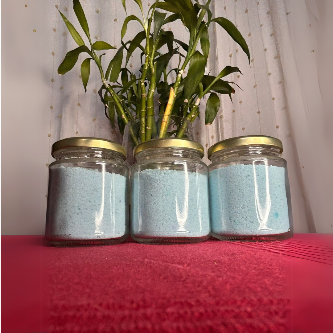 Descubre el poder revitalizante de nuestras sales de baño en tono celeste, formuladas para equilibrar tus energías y brindar una experiencia de serenidad profunda.